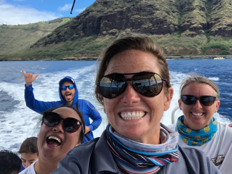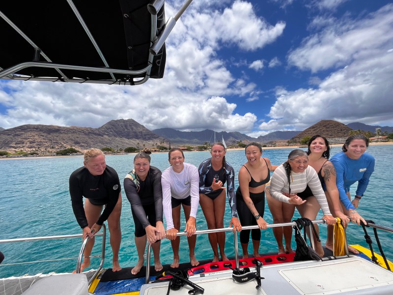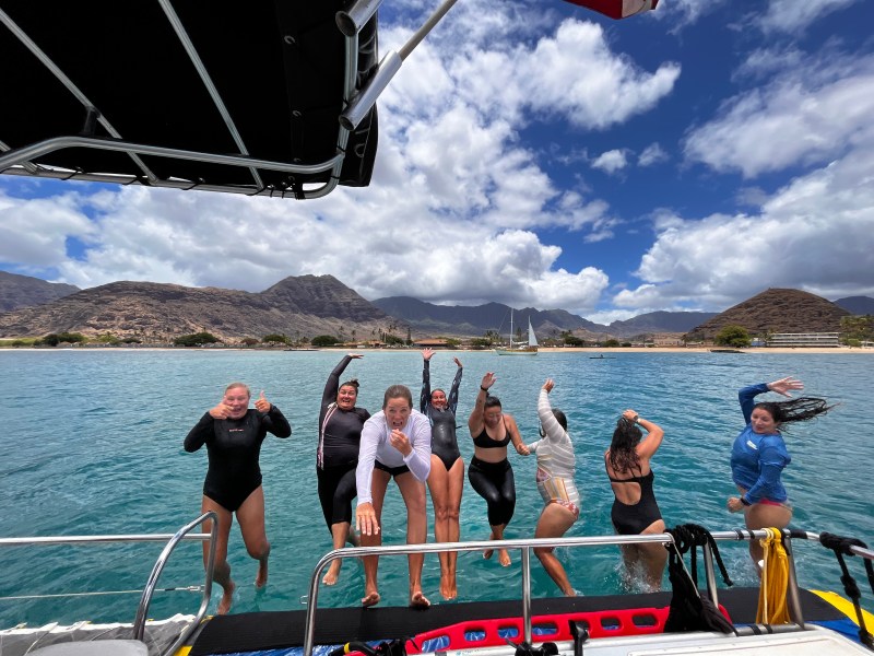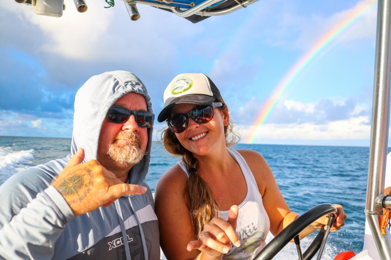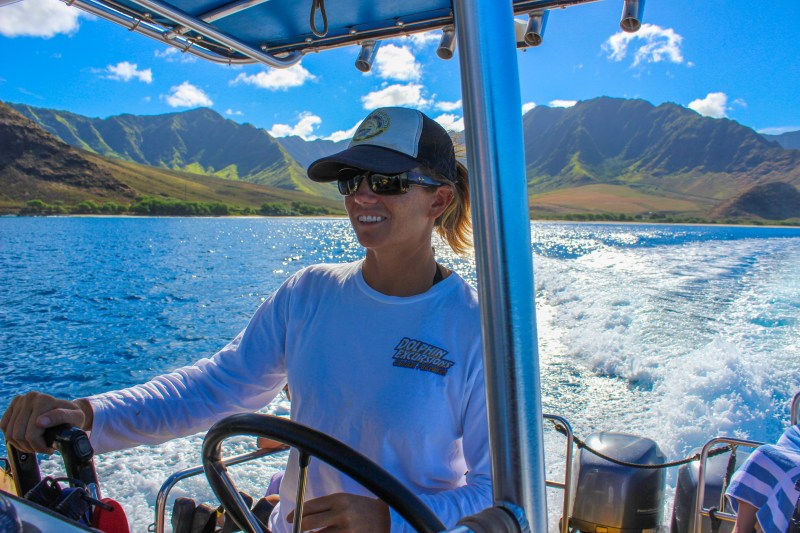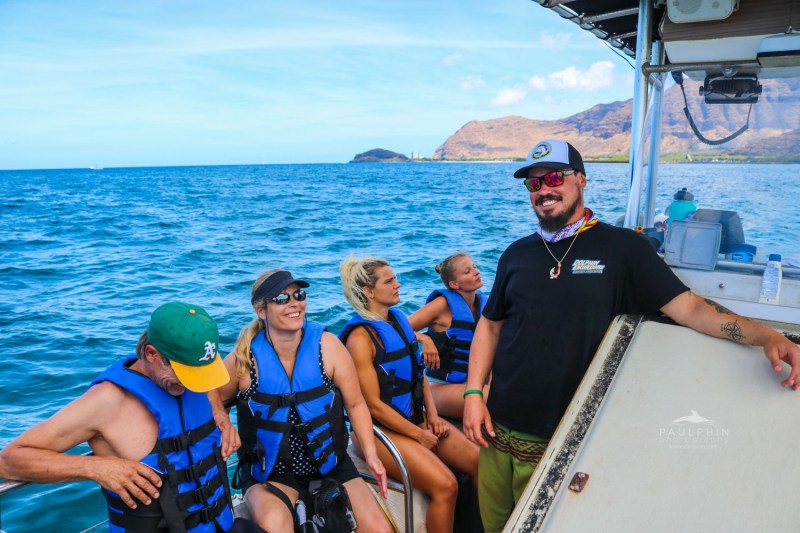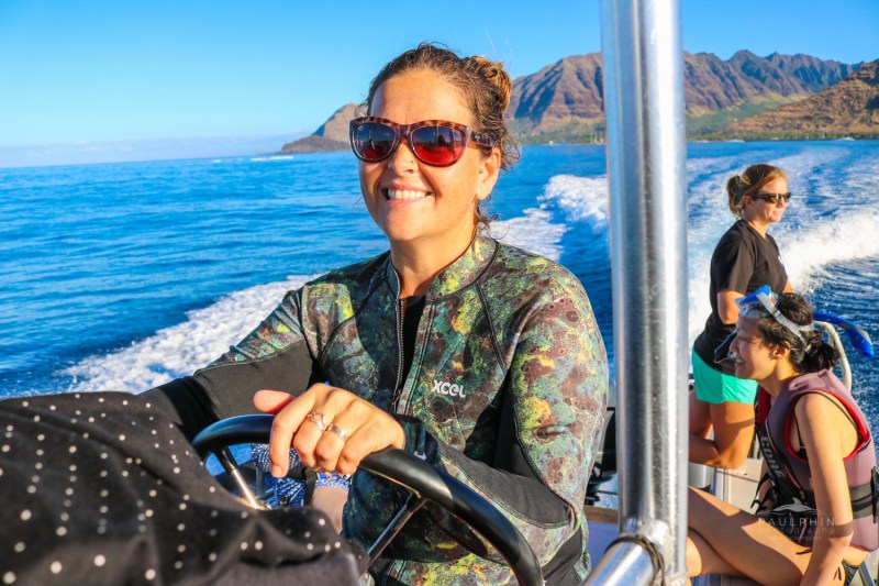 We have four captains on staff that have had many years of experience maneuvering Oahu’s remote West side Coastline. Jenna (Marine Biologist) is our Senior Captain. Jenna has been working with us since 2004, beginning as crew and stepped it up as our senior captain. She has also crewed a vessel throughout the Atlantic and really knows her way around a boat…and a good joke. Captain Alexa “Lex” (Marine Biologist)and Captain Flow are here to give her a break. All of our captains started out as crew and made their way to the drivers seat. They also still ride shot gun from time to time, still crewing for us.