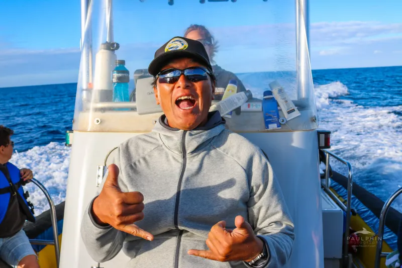 Since 1998, my passion has been with the dolphins and other marine life that frequent this remote and beautiful coastline where often times we are the only boat witnessing the aerial behaviors of the spinner dolphins and humpback whales. I truly love these waters and their inhabitants and look forward to sharing this treasure with you!